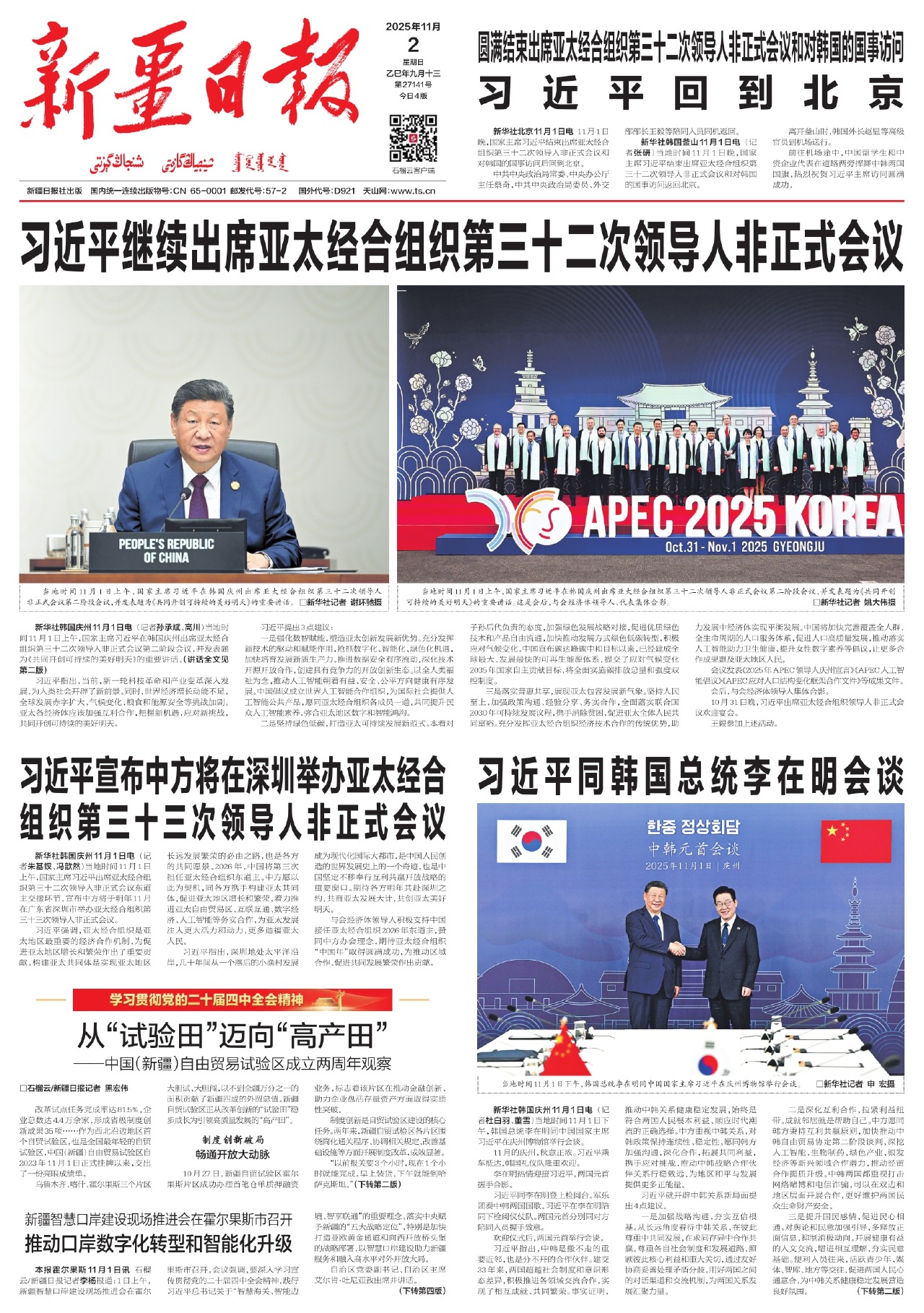 習(xí)近平結(jié)束出席APEC第三十二次領(lǐng)導(dǎo)人非正式會(huì)議和對(duì)韓國(guó)的國(guó)事訪問(wèn)回到北京 深刻把握時(shí)代大勢(shì) 指引亞太可持續(xù)發(fā)展 為開(kāi)創(chuàng)亞太和世界更加美好的未來(lái)匯聚強(qiáng)大合力